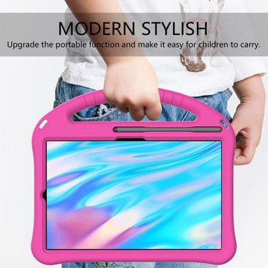 Et børnevenligt etui med håndtag og justeringsfunktion til din tablet, der beskytter godt mod stød og fald.