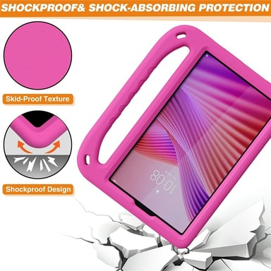 Dette børnevenlige skal med håndtag og stander er fremstillet af giftfrit EVA-materiale, som giver en perfekt pasform og 360 graders beskyttelse. Den forstærkede ramme giver effektiv stødabsorbering og modstandsdygtighed over for slag. Den kreative stander har to visningsvinkler for komfortabel håndfri brug. Det brugervenlige håndtag gør det nemt at bære, samtidig med at konstruktionen er slidstærk. Hævede kanter beskytter kameralinsen, når enheden ligger på en flad overflade. Præcise udskæringer giver nem adgang til alle funktioner. Fås i flere farver for at imødekomme forskellige behov.