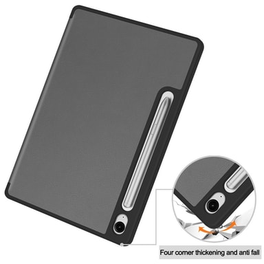 Elegant cover fremstillet af fint PU-læder med et indvendigt TPU-etui, der kombinerer stil og funktion. Det smarte tri-fold design giver en stabil og fleksibel stander til nem visning og skrivning. Den bløde mikrofiberforing beskytter skærmen mod ridser og snavs. Præcise udskæringer sikrer fuld adgang til alle porte og knapper. Praktisk penneholder holder styr på din pen (pen medfølger ikke). Coveret understøtter automatisk vågne- og dvalefunktion for at spare batteri.