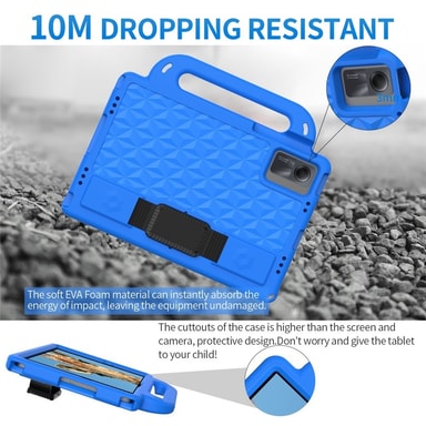 Fremstillet af miljøvenligt og giftfrit EVA-materiale, som giver sikker beskyttelse til børn. Det stødabsorberende og slagfaste design gør det ideelt til legende omgivelser. Den unikke rhombus-tekstur kombineres med et praktisk stativ til håndfri visning. Håndtaget gør det nemt at bære, og et indbygget rum holder stylus-pennen på plads (pen medfølger ikke). Nem adgang til alle funktioner, og den medfølgende skulderrem giver ekstra bekvemmelighed.