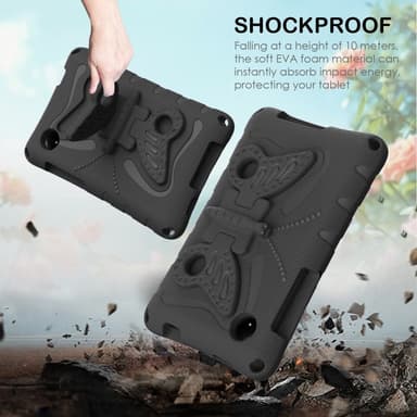 Butterfly EVA er det perfekte beskyttelsescover til din tablet. Lavet af blødt, giftfrit EVA-materiale, der slutter tæt om din tablet. Det unikke butterfly-stativ giver fleksible synsvinkler, og den justerbare skulderrem gør den nem at bære. Coveret er designet med forstærkede rammer, der absorberer stød og slag, og hævede kanter beskytter skærm og kamera. Butterfly EVA er perfekt til børn og aktiv brug.