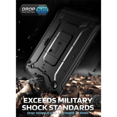 Supcase Unicorn Beetle Pro tabletcover er konstrueret til at opfylde de højeste standarder og giver din tablet den bedste beskyttelse. Med en støddæmpende bagside af polykarbonat og kanter af TPU samt en front af polykarbonat tilbyder dette tabletcover militærklasse beskyttelse mod ridser, stød og fald. Supcase har vundet CNET's førstepris i forskellige tests ved at slippe etuiet fra forskellige højder uden at gå i stykker. Supcase har også opnået den amerikanske militærcertificering MIL-STD 810G-516.6. Tabletcoveret har en integreret stand, der kan foldes ud efter behov. Integreret skærmbeskyttelse holder skærmen beskyttet mod snavs og ridser.