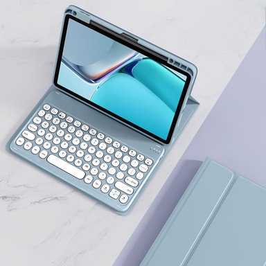 Multifunktionelt & Komfortabelt: Dette bluetooth tastatur cover er udstyret med en responsiv touchpad og en række genvejstaster, der forbedrer din produktivitet og giver en problemfri brugeroplevelse. De komfortable taster tilbyder en behagelig skriveoplevelse, selv under længere tids brug.