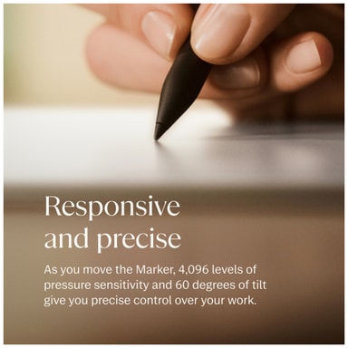 Skift øjeblikkeligt mellem en række skriveværktøjer, der passer til din opgave. Fra præcisionen af en kuglepen til flydendeheden af en malerpensel tilbyder Marker en række muligheder, der kan justeres med et enkelt tryk.