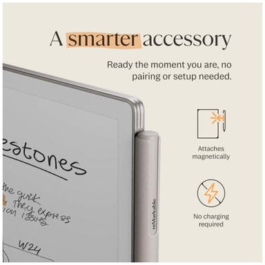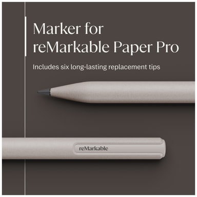 ReMarkable Paper Pro Marker Basic stylus giver dig mulighed for at låse op for din kreativitet og opnå næste niveau af produktivitet. Nyd avanceret notetagning og skitsering med upåklagelig præcision, og oversæt din hånds bevægelser til smukke kunstværker. Den fastgøres magnetisk til din enhed, og dens drift er batterifri. (Kun kompatibel med reMarkable Paper Pro - fungerer ikke på andre reMarkables).