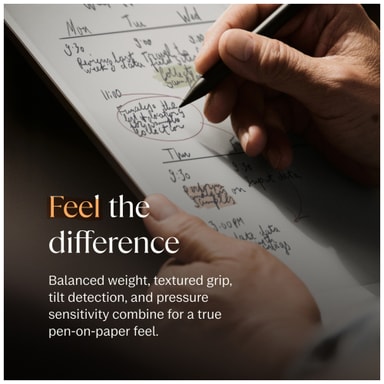 Marker Plus's ergonomisk teksturerede overflade giver et sikkert greb til længere skrivesessioner. Stiften er omhyggeligt vægtet, så den føles som en rigtig pen, og den tilbyder et behageligt hold, der gør det muligt for dig at arbejde i timevis uden ubehag.