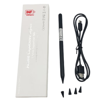 Touch pen til kapacitive skærme på tablets som iPad, iPad Mini, iPad Air og iPad Pro. Smart design, der forhindrer utilsigtet berøring, hvilket gør pennen meget behagelig at bruge. Med magnetisk absorption for at kunne fastgøres til tabletten. Spidsen kan udskiftes, og pennen slukker automatisk efter 5 minutter i standby for at spare på batteriet. Oplader med medfølgende USB-C kabel.