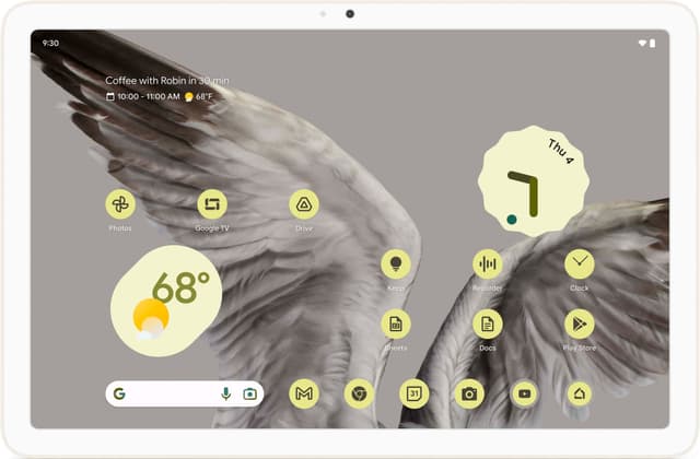 Pixel-tabletten er designet med førsteklasses materialer og finish samt fine, afrundede hjørner, der gør den til en umiskendelig del af Pixel-familien. Med dens fantastiske skærm kan du nyde dine yndlingsprogrammer, apps, videoopkald og mere på en større skærm.