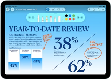 - IPADOS + APPS – Kør apps,6 og få mere fra hånden med de helt nye muligheder og det brugervenlige design i iPadOS. Det fleksible, intuitive vinduessystem hjælper dig med at skabe overblik og få klar struktur på dine arbejdsgange.