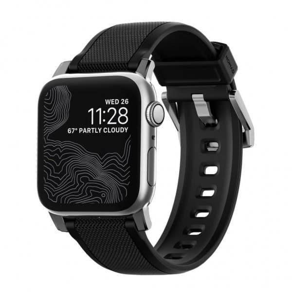 • NOMAD Apple Watch 42/44mm/Apple Watch Ultra Armbånd Rugged Strap Sølv/Sort
