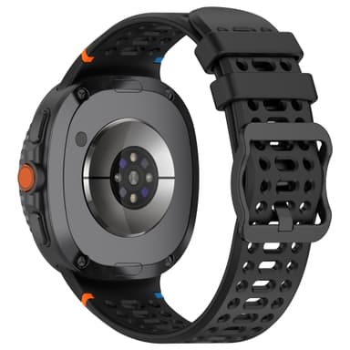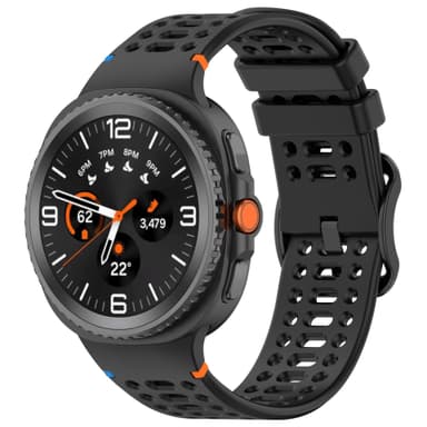 Denne silikone sportsrem er designet med åndehuller, der sikrer optimal ventilation og komfort under træning og daglig brug. Det bløde og hudvenlige materiale forhindrer irritation og giver en behagelig pasform hele dagen. Perfekt til compatible with Samsung Galaxy Watch 8 og 8 Classic.