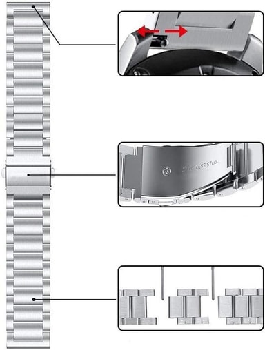 Et link-armbånd med hurtig udløsning. Armbåndet er lavet af rustfrit stål, hvilket giver det et eksklusivt udseende og en eksklusiv følelse. Kan være tabort links for at ændre størrelse.