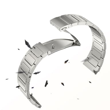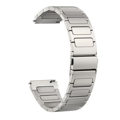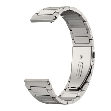 Premium Titanium Konstruktion: Fremstillet af højkvalitets titaniumlegering, tilbyder denne urrem enestående styrke og en raffineret æstetik. Titaniummaterialet sikrer en behagelig følelse på dit håndled, samtidig med at det giver modstand mod daglig slitage. Dens lette natur forhindrer enhver byrde, så du kan bære dit smartwatch hele dagen uden ubehag. Den sølvfarvede finish tilføjer et strejf af sofistikering, hvilket gør den velegnet til både afslappede og formelle lejligheder.