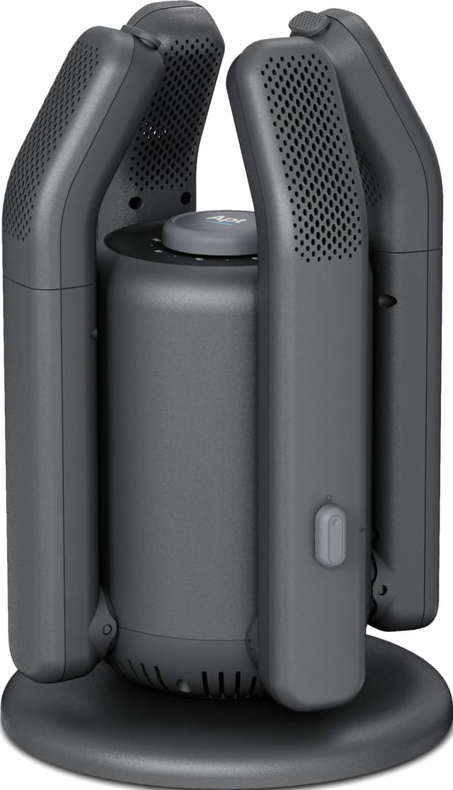 135W Apt Shoe Dryer tørrer effektivt op til to par sko samtidigt. Den har en roterende kontakt på toppen med timer-indstillinger, UVA-sterilisering og udsender varm luft ved 50°C. Den er også udstyret med justerbare dobbelte slanger.Læs mere om produktet