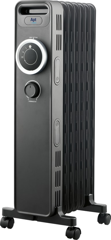 Apt olieradiatoren 1500Wgiver en stabil og lydløs varme med 7 ribber for effektiv rumopvarmning. Den har 3 varmeindstillinger, justerbar termostat, væltesikring og overophedningsbeskyttelse samt ledningsopbevaring for et sikkert og praktisk design.Læs mere om produktet