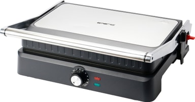Denne 2.200 watt Emerio bordgrill CG-130859 åbner 180° fladt med en 34x24 cm non-stick overflade, perfekt til at grille sandwich, kød og grøntsager. Den har en justerbar termostat for nem madlavning og rengøring.Læs mere om produktet