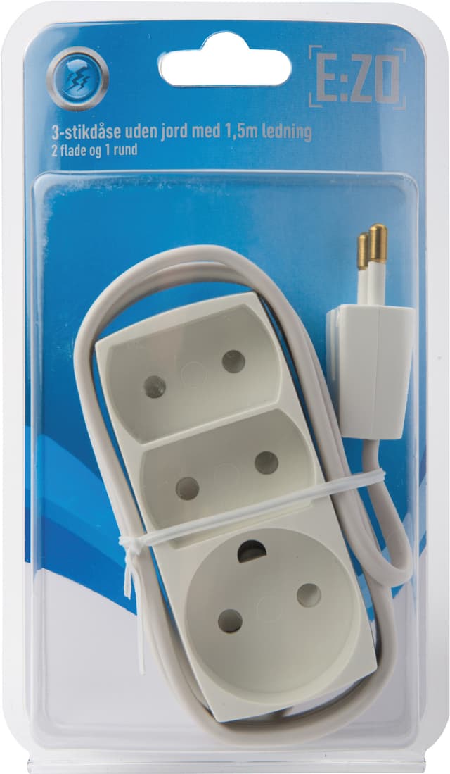 Stikdåse med 3 udtag og 1,5 meter ledning. Tilslut 3 enheded til en stikontakt.