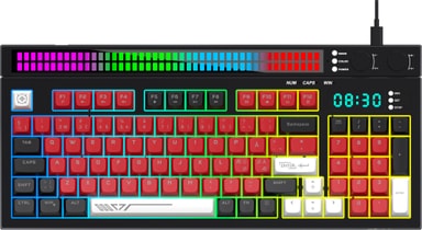 Optimer din gaming- og skriveoplevelse med Next KD5-tastaturet, der har en 94% formfaktor, to kontrolknapper til lydstyrke og lysstyrke, indbygget alarm med nedtælling, tilpasselig RGB-belysning og en lydfølsom lysbjælke med 17 dynamiske farver og over 13 lyseffekter.