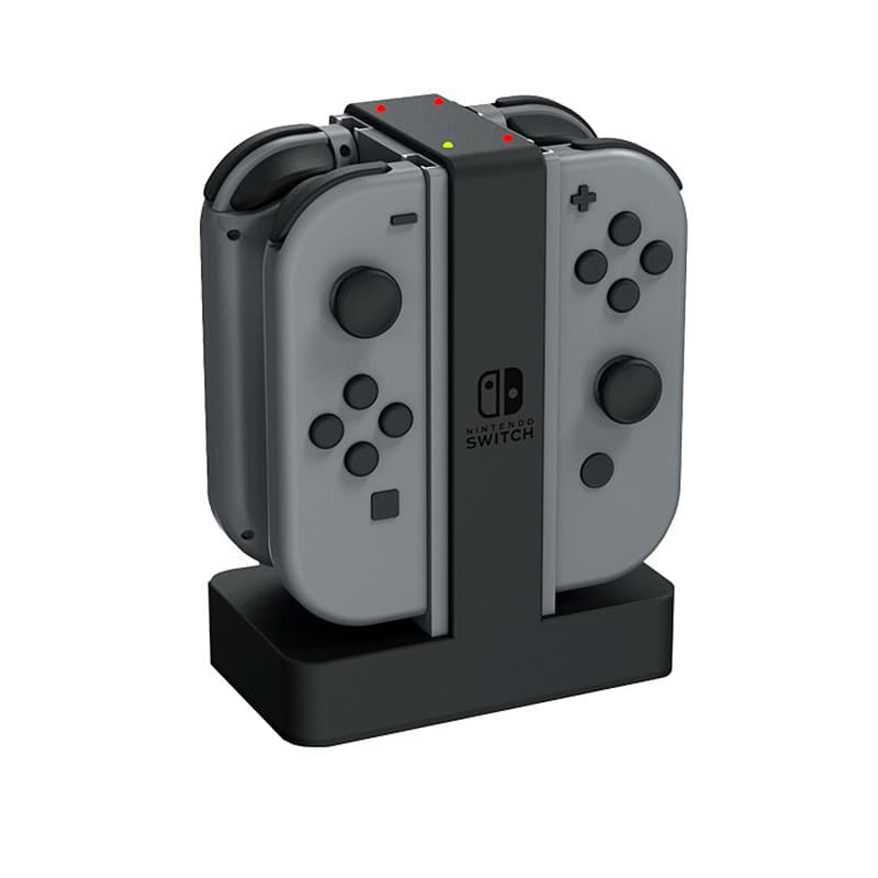 Med Joy-Con opladningsdock til Nintendo Switch kan du oplade op til 4 af dine Joy-Con controllere på samme tid. Du kan derfor sørge for opladte controllere til flere spillere eller holde ekstra controllere klar til dit eget spil.Læs mere om produktet