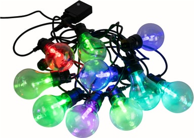 1,5W Nord Bulb 10L dekorationsbelysning er en 3 meter lang lyskæde med 10 pærer, der lyser op med flerfarvede lys. Denne lyskæde er IP44-klassificeret, hvilket gør den velegnet til både indendørs og udendørs brug.Læs mere om produktet
