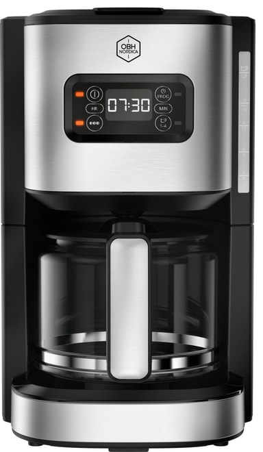 OBH Nordica Heritage kaffemaskinen OP480DS0 får dig ud af fjerene med en friskbrygget kop kaffe. Kaffemaskinen har et elegant design i rustfrit stål, 1,25 l kapacitet, 24-timers digital timer, antidryp-funktion og intuitiv skærm.Læs mere om produktet