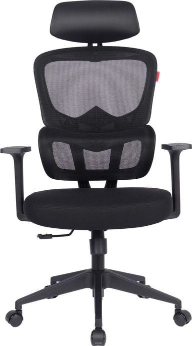 Sædet er fremstillet af blødt materiale, og stolen har et mesh-ryglæn med indbygget lændestøtte for optimal komfort.