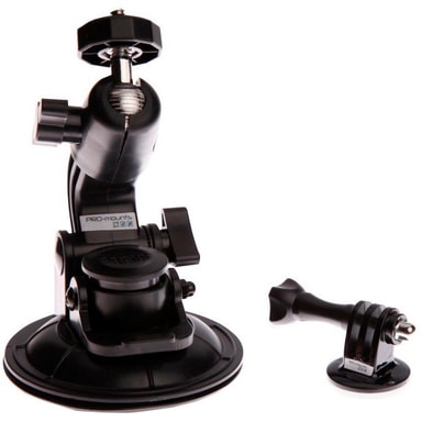 Med Pro-Mounts sugekopsfæstet til GoPro-actionkameraer kan du fæste dit GoPro actionkamera trygt til flade overflader i din bil, på din motorcykel og meget mere. Sugekoppen er stærk nok til at kunne fæstes til en fly, der flyver med 200 km/t.