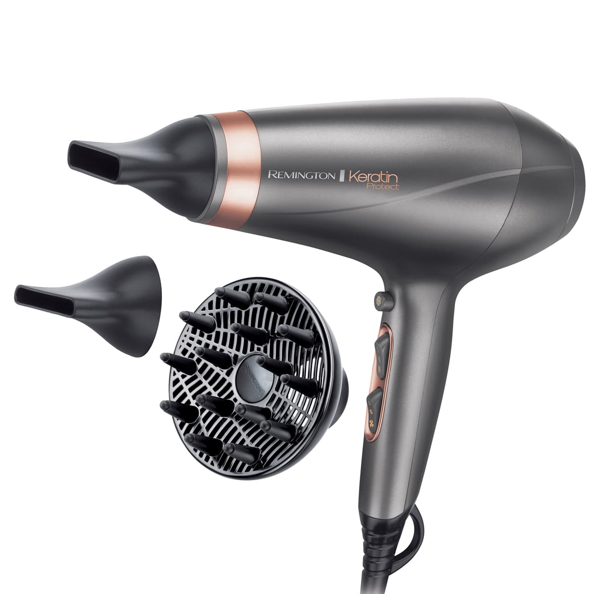 Style dit hår som en professionel med Remington Keratin Protect hårtørreren AC8820, der har 2200 Watt ac motor, ionteknologi, elegant design og nyttigt tilbehør. Hårtørreren kommer med fem års garanti.Læs mere om produktet
