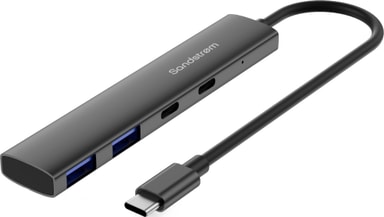 Sandstrøm S2C2AHUB26E 4-i-1 USB-C hub tilbyder lynhurtig 5Gbps dataoverførsel med 2x USB A og 2x USB C porte, perfekt til hurtig fildeling mellem enheder som USB-stik, tastaturer og gamecontrollere i elegant space grey.Læs mere om produktet