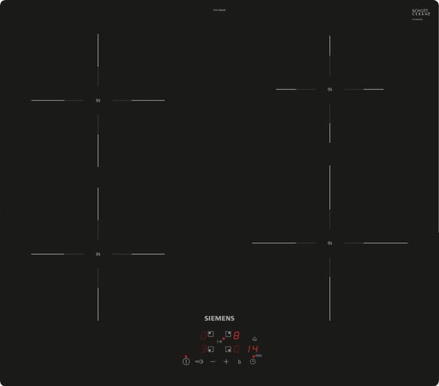 Madlavning med Siemens kogepladen EH61RBEB6Z bliver en hurtig og ubesværet opgave takket være de 4 kogezoner med PowerBoosters, 17 effektniveauer og praktiske funktioner som QuickStart og ReStart.Læs mere om produktet