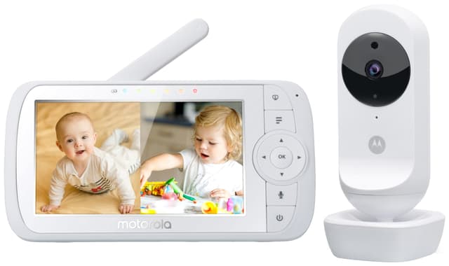 Motorola VM35 baby video monitor 760317 har alle de fornødne funktioner, du skal bruge for at holde øje med dit barn fra et andet rum. Få overblik over børneværelset i skarpe farver, takket være den store 5,0" LCD-skærm, digital zoom og nattesyn. Kontrol temperaturen i rummet, kommuniker via tovejslyden, eller sørg for en tryg nattesøvn til din baby med en dejlig vuggevise.