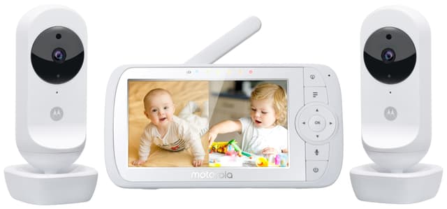 Motorola VM35-2 babyalarmen med video 760318 kommer med 2 babyalarmsenheder, 300 m rækkevidde, tovejslyd, stor 5,0'' LCD-farveskærm og splitscreen. På den måde kan du holde øje med begge dine babyer på én gang.Læs mere om produktet