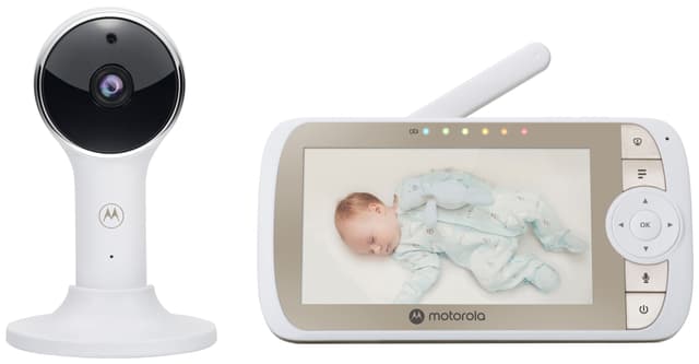 Motorola VM65X Connect babyalarmen 760320 lader dig se, høre og kommunikere med dit barn, hvor end du er i huset, takket være tovejslyd og 5” fuld farve LCD-skærmen. Babyalarmen har kamera, der giver dig Full HD (1080 p) livevideo fra Motorola Nursery-appen via wifi, så du aldrig går glip af et øjeblik. Montér udstyret over krybben for et fuldendt overblik over dit barn.