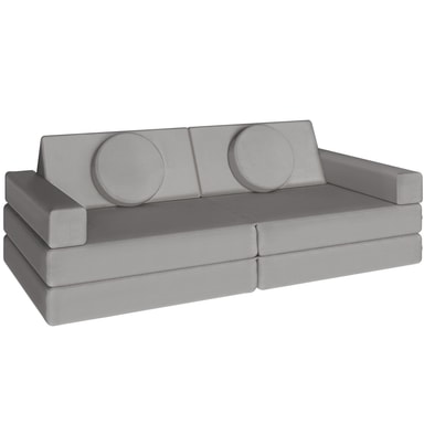 • tectake Børnesofa Lilly, 8-delt, med sovefunktion 80 x 160 x 56 cm Grå