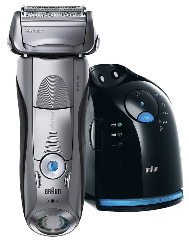 Førsteklasses barbermaskine, Braun Series 7 799cc, for en ultimativ tæt våd eller tør barbering med et automatisk Clean & Renew center, der giver fuld vedligeholdelse.