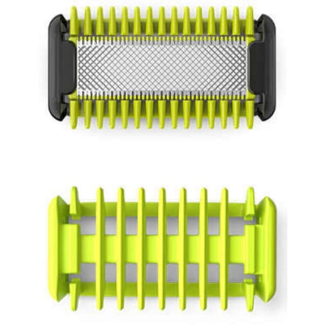 Philips OneBlade Face + Body trimmet, barberer og formerer rene kanter ved enhver hårlængde. Denne reservepakke indeholder en klinge til ansigtet med et påmonterbart hudbeskyttelsestilbehør samt en kam-tilbehør til kroppen. Aldrig mere flere enhederLæs mere om produktet