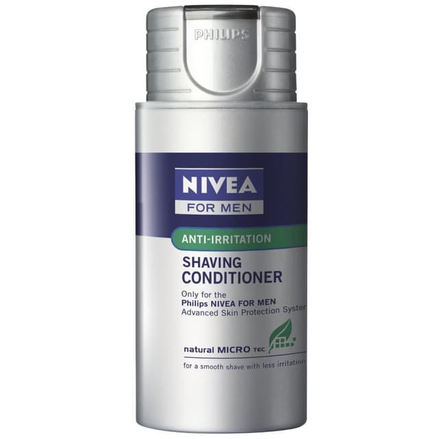 Denne conditioner fra Nivea For Men påføres direkte på huden under barberingen takket være Philips’ unikke conditioner dispenseringssystem.