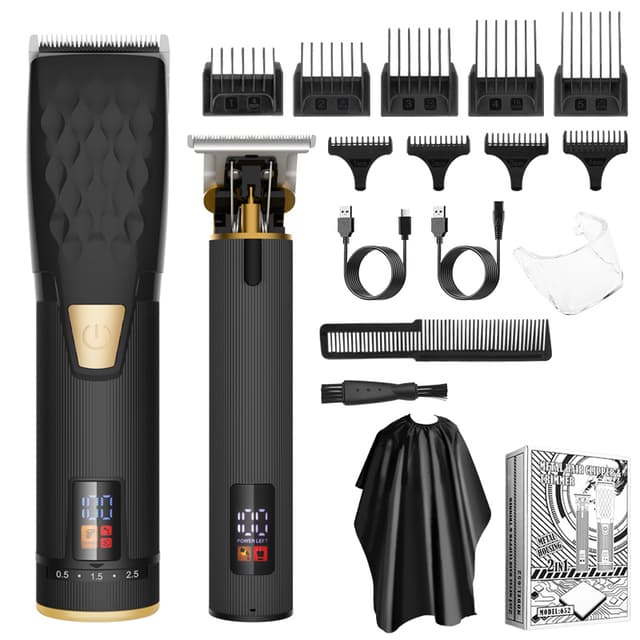 Alsidigt tilbehør: Sættet indeholder en række tilbehørsdele, der opfylder alle dine plejebehov. Den består af en professionel hårklipper, en graveringstrimmer, store og små grænsekamme, USB-opladningskabler, en kam, en rengøringsbørste, et gennemsigtigt beskyttelsescover og en stofhagesmæk.