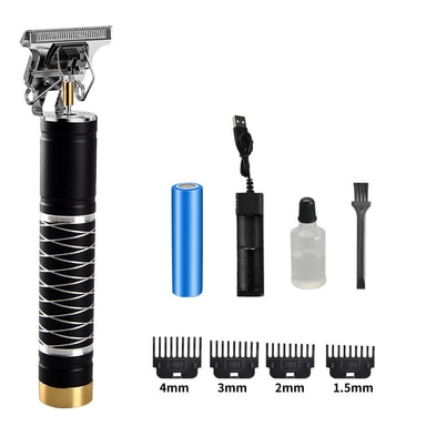 Denna elektriska hårklippare är gjord av högkvalitativ aluminiumlegering zinklegering, graverad med utsökt vitt spiralmönster. USB-laddning, lämplig för gravering, push white, gradient, trimning av hårstil.