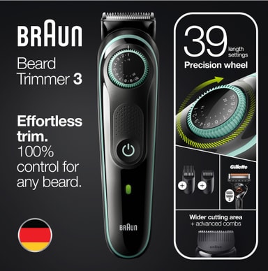 Sæt dit skæg og hår på din egen måde med Braun skægtrimmeren BT3341. Med et bredt skærehoved, en præcisionsskive med 39 længdeindstillinger og livstidsskarpe skæreblade kan du opnå ethvert look, du ønsker, på kort tid.Læs mere om produktet