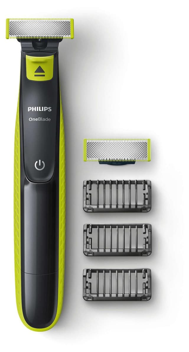 Philips OneBlade er en revolutionerende ny hybrid-styler, der trimmer hår i enhver længde, barberer og former på rene kanter. Aldrig mere flere enheder og arbejdstrin - OneBlade klarer det hele. Enestående OneBlade-teknologi Philips OneBlade er en revolutionerende og ny teknologi, der er udviklet til mænd med skæg og forskellige skægtyper. OneBlade egner sig til trimning og styling samt til barbering af alle længder skæg/hår. Den enestående OneBlade har et hurtigt blad (200 gange pr. sekund) med dobbelt beskyttelsessystem. Dette sørger for en effektiv og behagelig barbering, selv ved lange skæghår. OneBlade skærer ikke for tæt på huden, og du undgår derfor snitsår. Trimning Trimning af dit skæg med et af de 3 trimmertilbehør til perfekte skægstubbe. 1 mm for lette skægstubbe, 3 mm for mellemlange skægstubbe og 5 mm til længere skægstubbe. Styling Sørg for præcise linjer i din styling. Du kan barbere i enhver retning for at få et optimalt udsyn og holde øje med ethvert enkelt hår, du ønsker at trimme. Barberingen er behagelig selv på følsomme steder på huden, så du på få sekunder kan style dit skæg hurtigt og nemt. Barbering OneBlade skærer ikke for tæt på huden, og du undgår derfor snitsår. Før barbermaskinen mod hårets hårvækstretning, barbér enhver skæghårslængde og bevar derved en behagelig fornemmelse på huden. Konturtilpasning OneBlade følger ansigtets konturer, så du på effektiv og behagelig vis kan trimme, style og barbere ethvert område af dit ansigt. Former perfekte kanter og præcise linjer med det dobbeltsidede blad Bevæg bladet i enhver retning, og skab kanter og tydelige linjer. Ensartet skægstubbe med 1, 3 eller 5 mm kam Montér trimmertilbehøret for at opnå ensartede resultater ved den ønskede længde. OneBlade med lang levetid Knivene er specielt designet til at sikre en optimal ydeevne. For at sikre en optimal effekt skal bladet kun udskiftes hver 4. måned. Nem og hurtig udskiftning. Våd/tør OneBlade er vandtæt og kan dermed nemt rengøres: skyl den blot under rindende vand. Du kan desuden barbere dig med eller uden skum alt efter behag. Batteri med lang levetid Det genopladelige batteri giver 45 minutters vedvarende stylingeffekt efter 45 minutteres opladning.