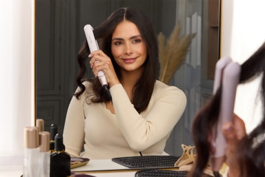 Glattejernet har en buet form, der gør det nemt at skabe både slanke glatte styles og bløde krøller eller bølger med det samme værktøj.