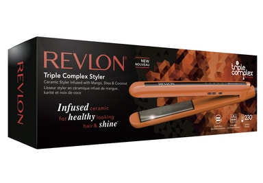 Revlon Triples Complex glattejernet RVST2415JPE har keramiskbeklædte plader, der er tilført mango, shea og kokosnød, som vil pleje dit hår og give det glans, samtidig med at det glatter dit hår – så du får præcis den frisure, du ønsker.Læs mere om produktet