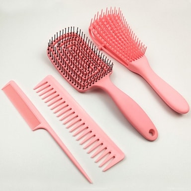 En perfekt sæt til dig, der leder efter behagelige børster og kamme. De er lavet af plastik, og børstens hårdhed kan justeres. Dette gøres ved at flytte remmen på bagsiden op eller ned. På den måde kan du tilpasse din børste efter dine egne ønsker.