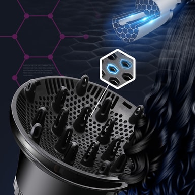 Effektiv hårstyling: Diffuseren er et must-have værktøj til effektiv og god hårstyling. Den hjælper med at fordele luftstrømmen jævnt, fremmer naturlige krøller og bølger, mens den forhindrer krus.