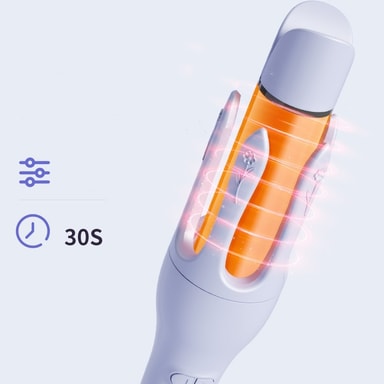 Ubesværede automatiske krøller: Dette krøllejern har en innovativ automatisk roterende tønde, der ubesværet skaber smukke, langvarige krøller med minimal indsats. Indsæt en del af håret i kammeret, tryk på en knap og lad strygejernet gøre arbejdet for dig.