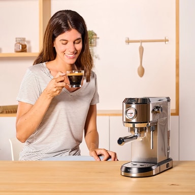 Og hvad mere er, du kan nyde din espresso med det samme, da den har termoblokopvarmning. Termoblokopvarmning er et system af rustfri stålrør, der gør det muligt at opvarme vandet til den ideelle temperatur på få sekunder for hurtig opstart.