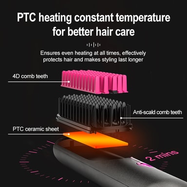 Let og bærbart design: Denne kam er designet til bekvemmelighed og bærbarhed og er let og kompakt, hvilket gør den nem at have med dig, uanset hvor du tager hen. Uanset om du rejser eller er på farten, kan du altid have en fejlfri hårstyling lige ved hånden.