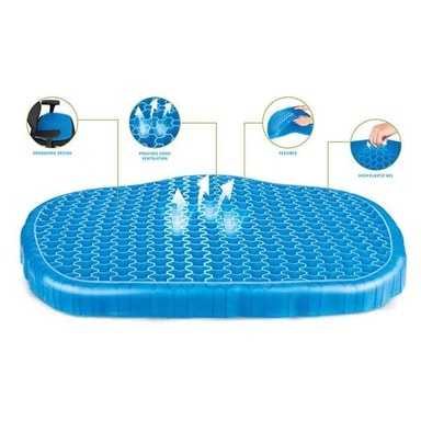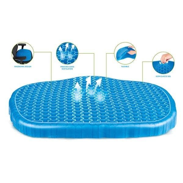En gelepude er en løsning for den som tilbringer megen tid siddende på f. ex. kontoret eller på lange rejser i bil. Pudens materiale, struktur og form er udformet for at give kroppen støtte og at forhindre rygsmerter. Den har en vokskagestruktur som gør at den ånder lettere og har lavere vægt og længere holdbarhed, desuden er gelpuden både blød og skridfri. Der indgår et pudebetræk i en sort farve, som er aftageligt og kan vaskes.