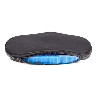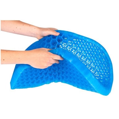 - Trykreducerende Gelepuden former sig efter din krop, så den fordeler trykket over en større flade. Dette skaber færre trykpunkter. - Friktionsmindskende Elasticiteten sikrer at gelelaget rører sig med din krop, hvilket mindsker friktionen på sædet. - Kølende egenskab Gele leder varme og holder kontaktfladen med huden lav, så en sådan pude kan give køling. - Størrelsen er ca 42 x 42 x 3 cm